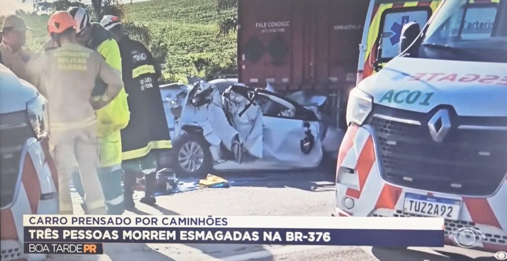 Três pessoas morrem em carro esmagado entre duas carretas emSão José dos Pinhais-PR.